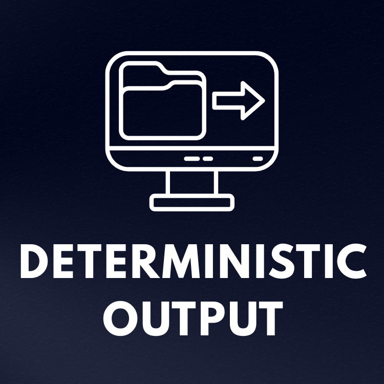 Outputs are repeatable and testable. No heuristic shortcuts without auditability, ensuring consistent results across runs and environments.