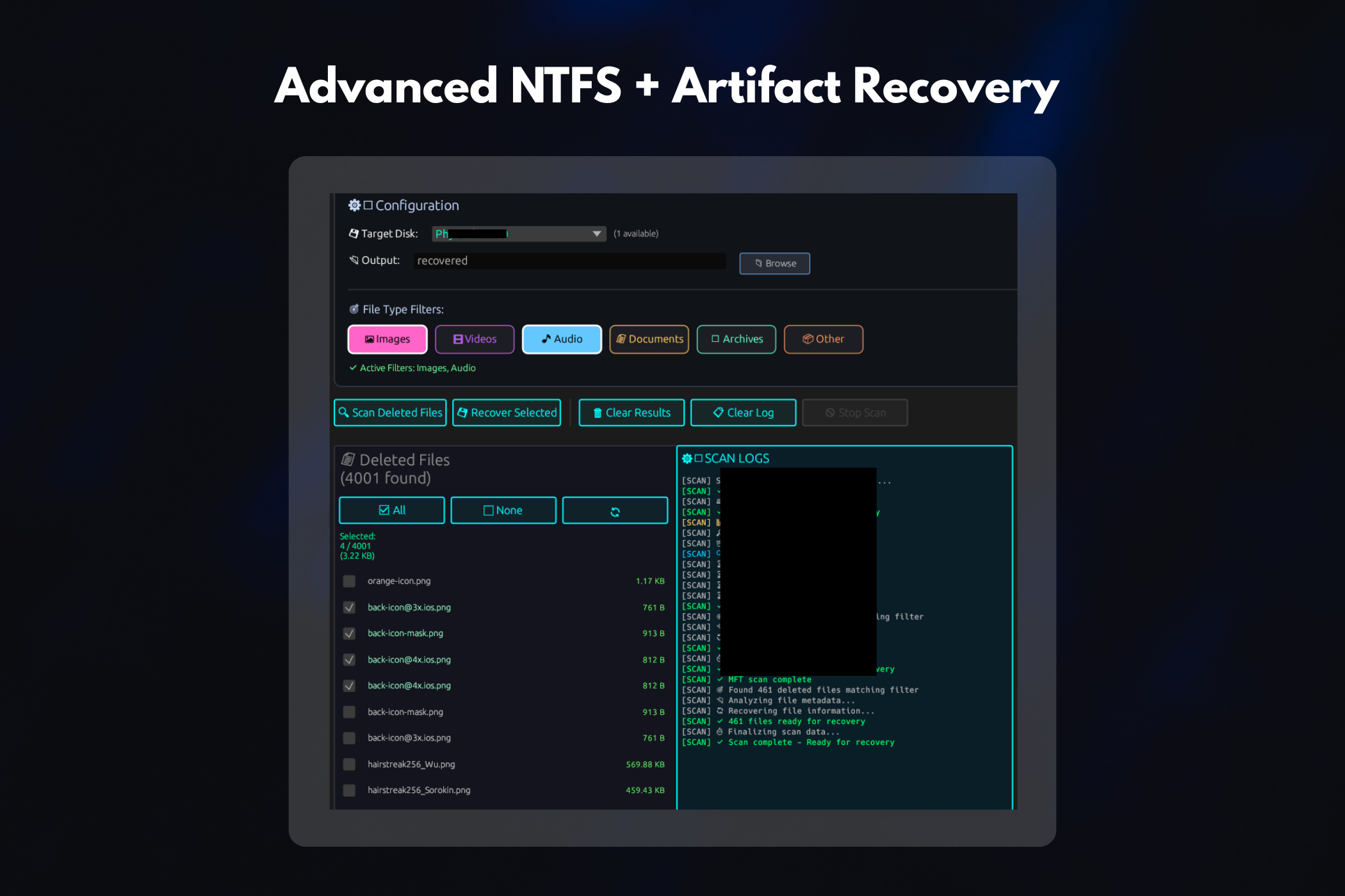Deterministic recovery for NTFS and related artifacts with traceable parsing, structured validation, and evidentiary reporting.